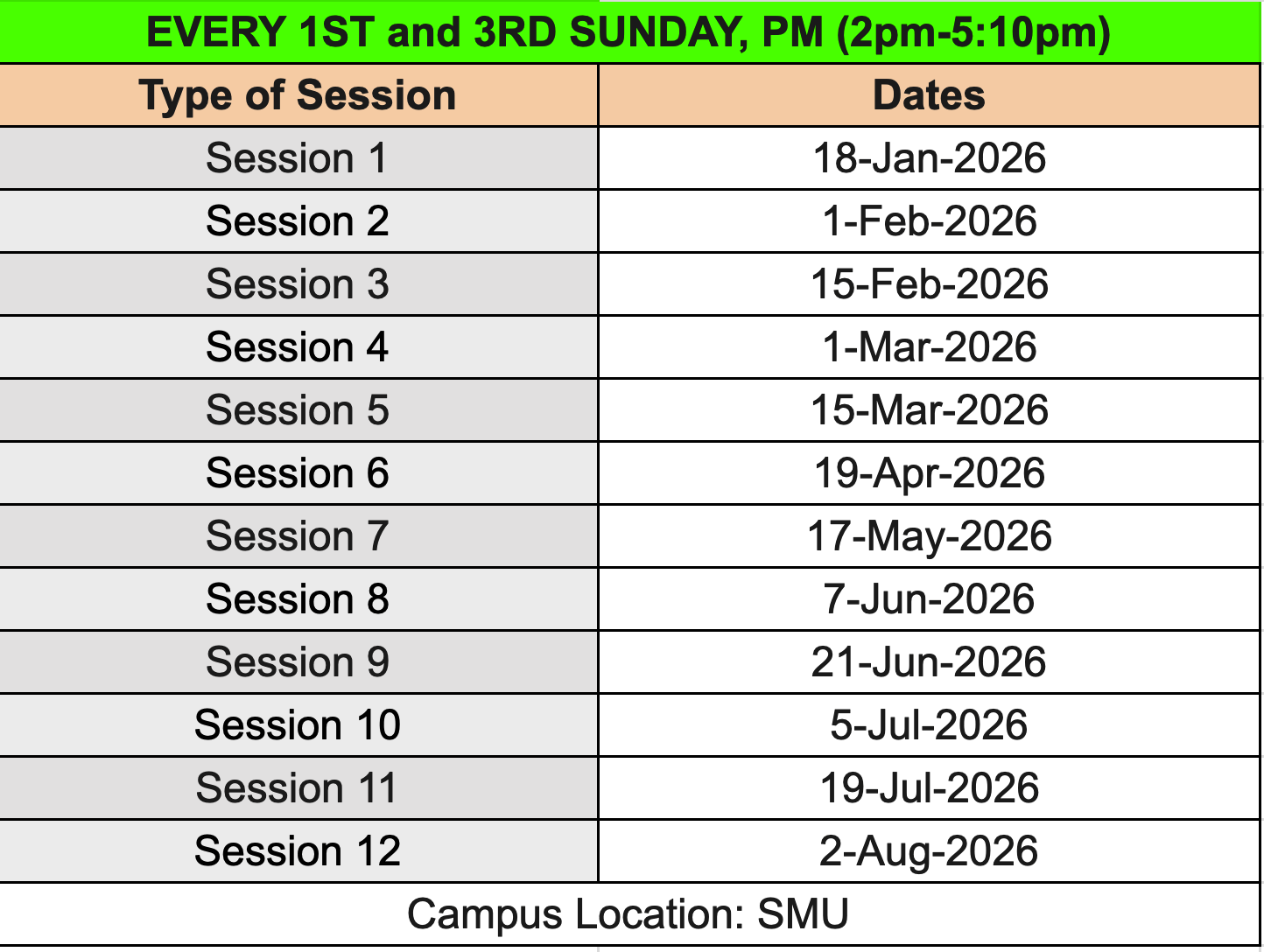 New batch coming soon! Please contact our team at +65 9789 4041 if you are interested in enrolling.