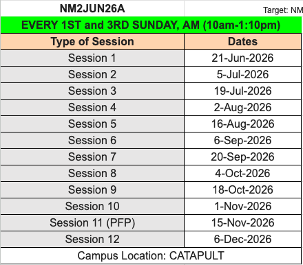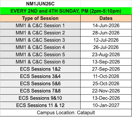 Morning class (AM):10:00 am – 11:30 pm: MM111:40 pm – 1:10 pm: C&C