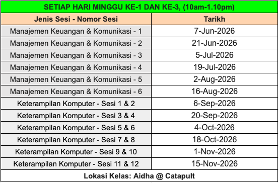 Kelas Petang (PM):10.00 – 11.10: MM111.40 – 1.10: C&C
